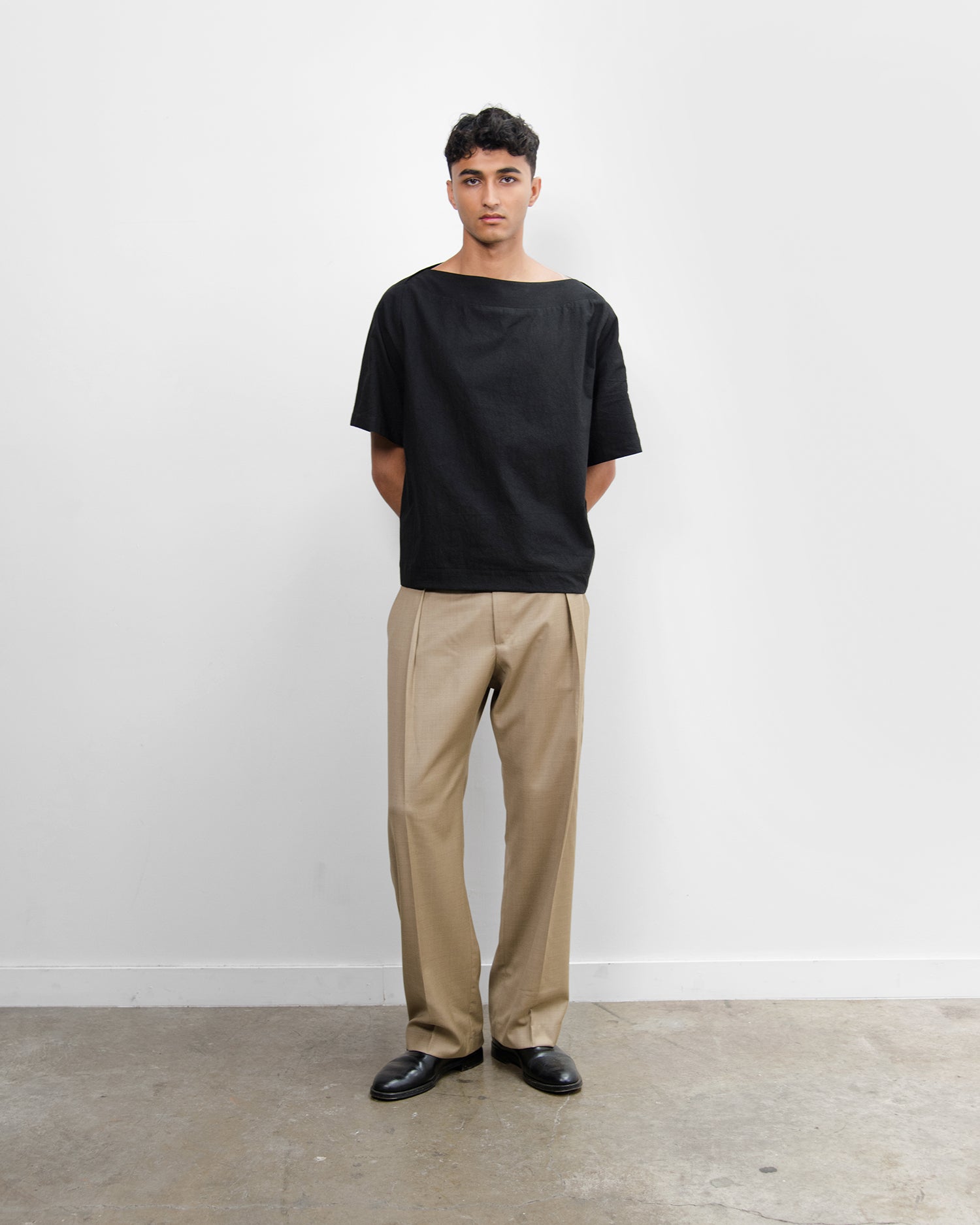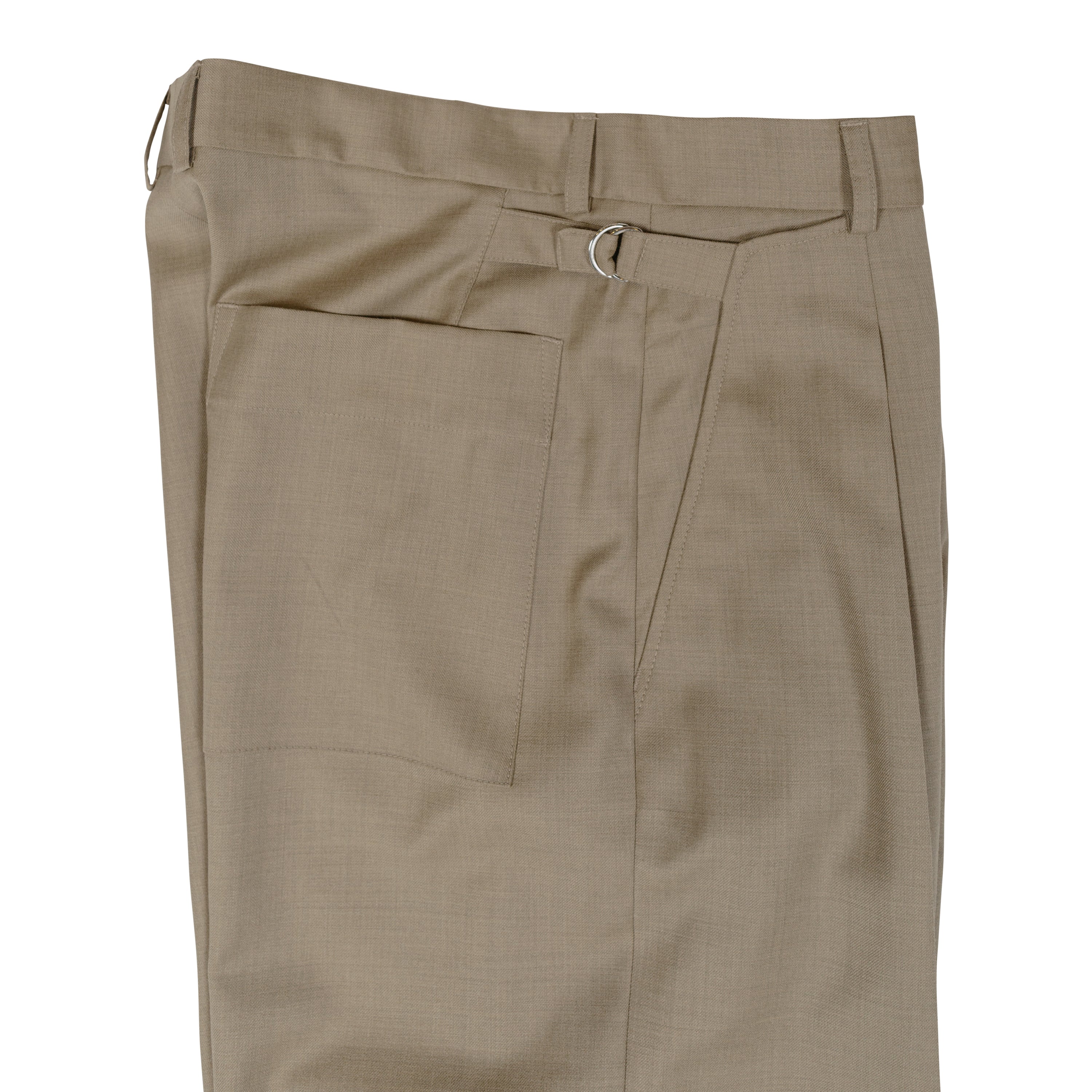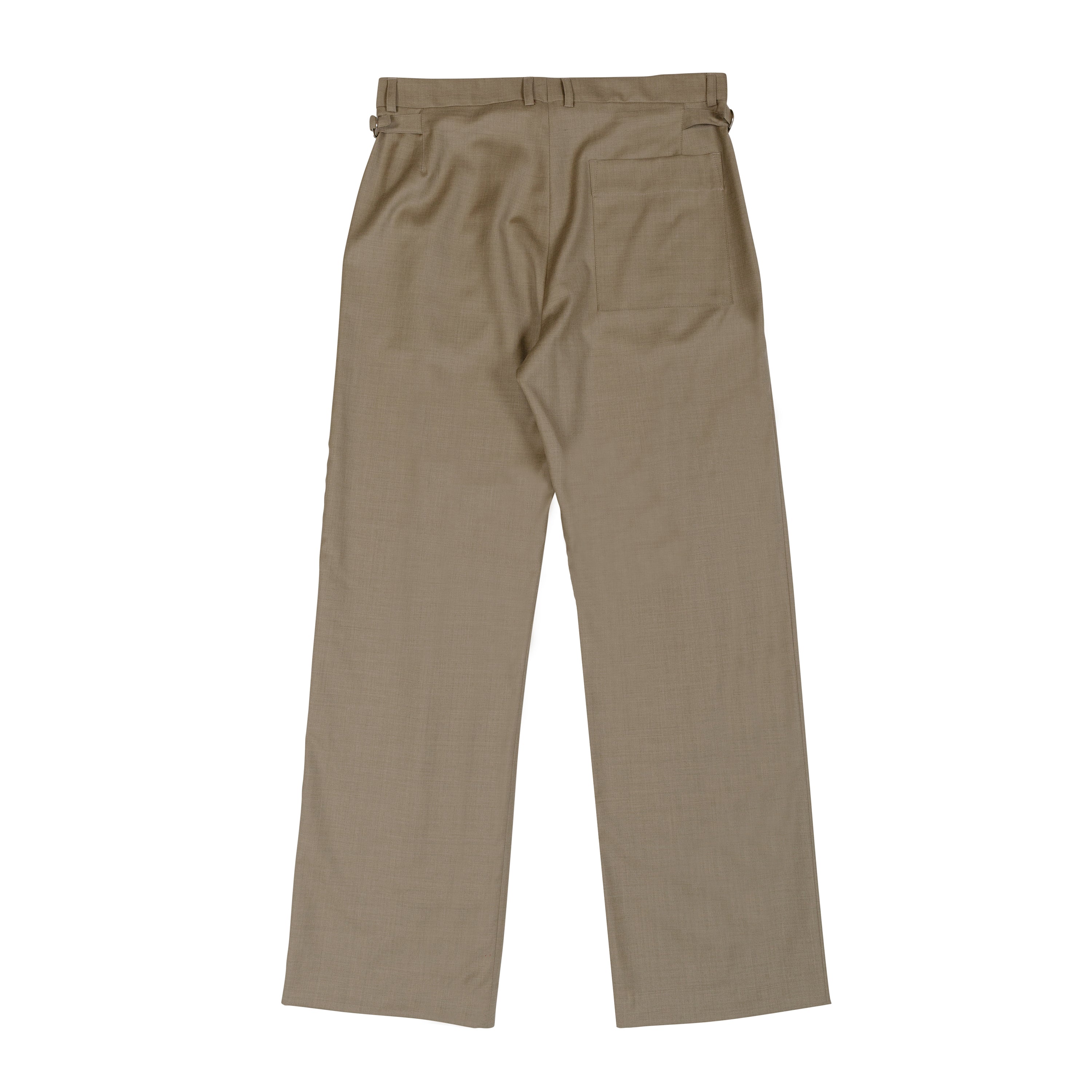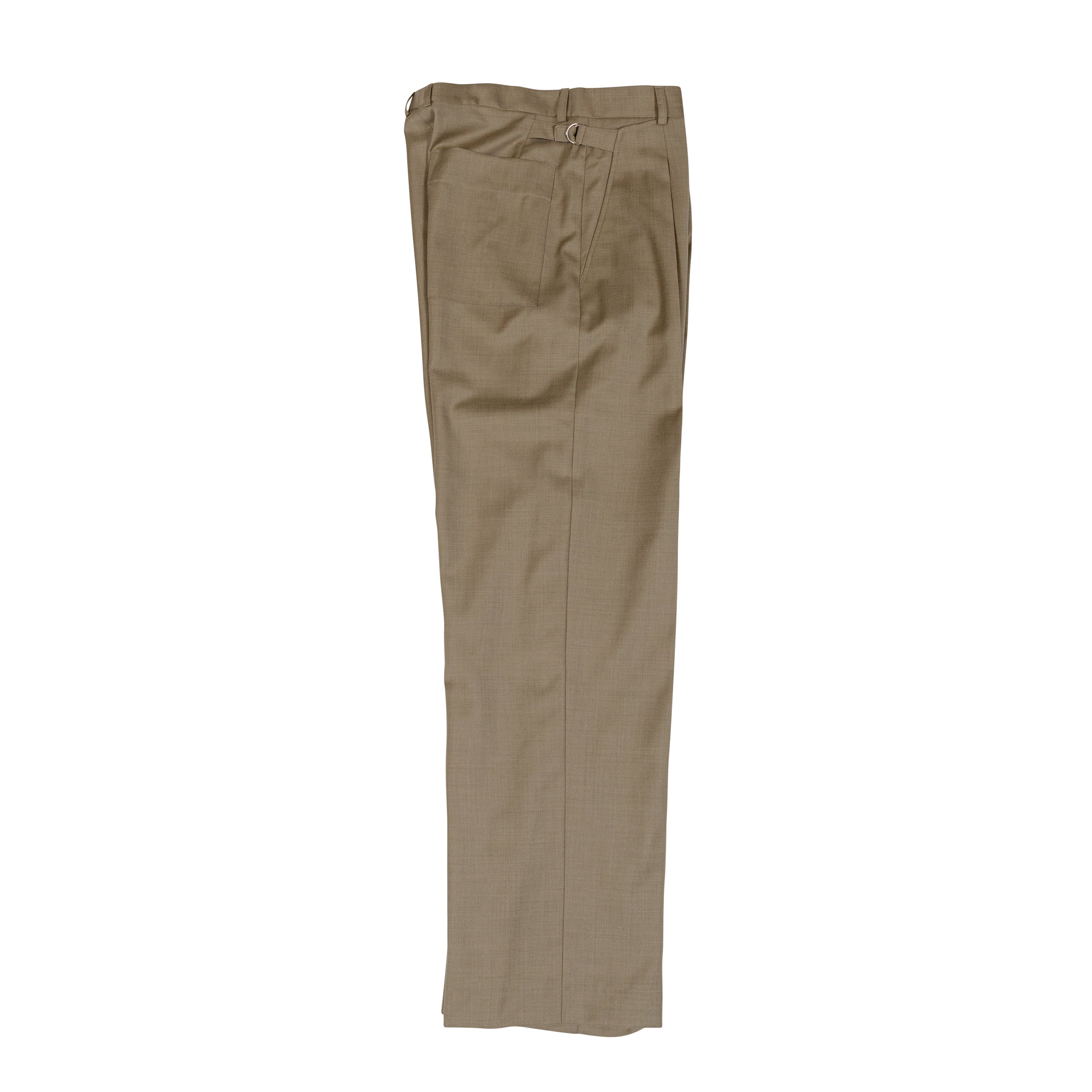 Inspired by French workwear, these trousers have a relaxed and straight leg fit. Featuring cinching D-ring straps connected to the front slash pocket opening, they allow the wearer to adjust the fit at the waist. A reverse pleat at the waist creases down the leg for a sophisticated look while a simple patch pocket adds functionality in the back.