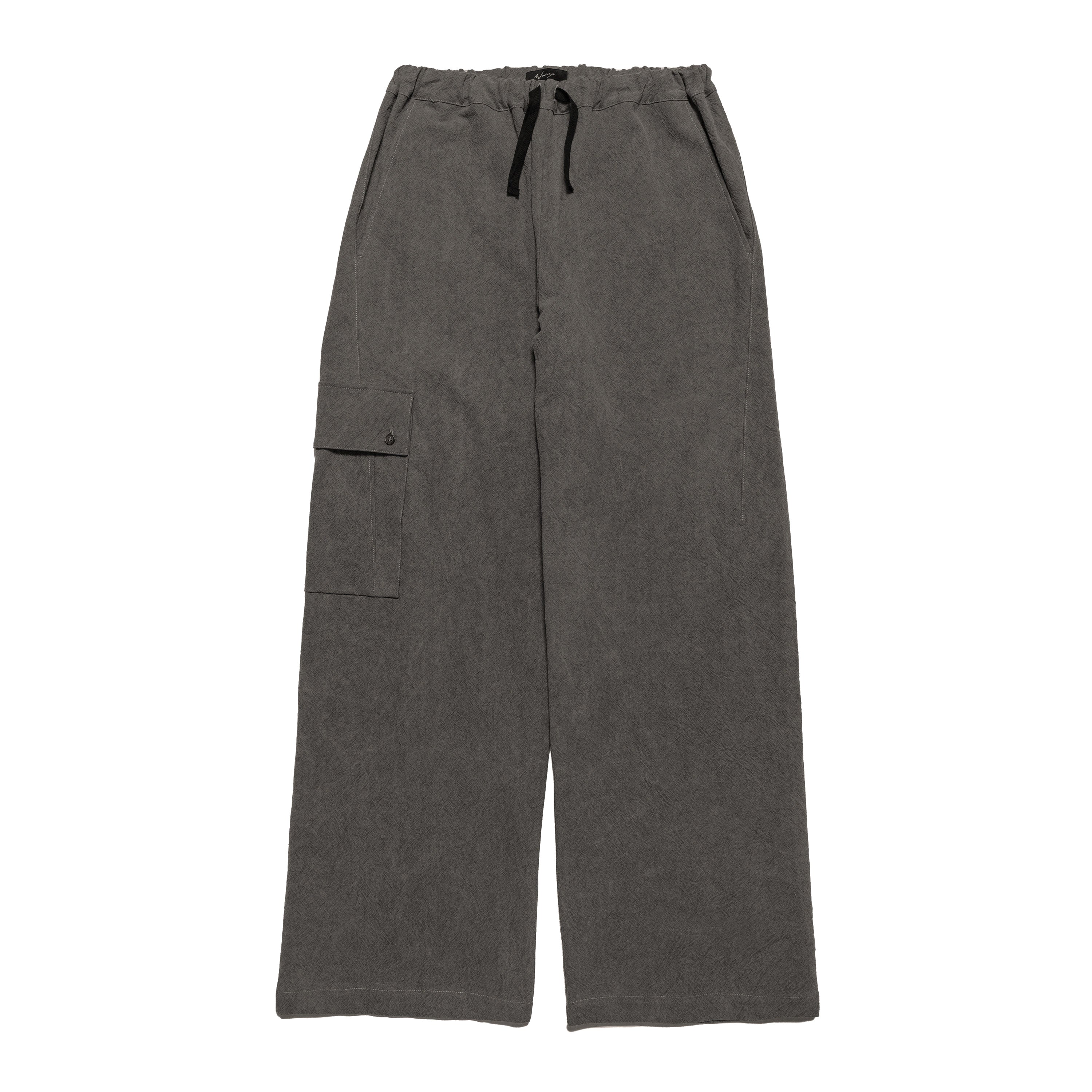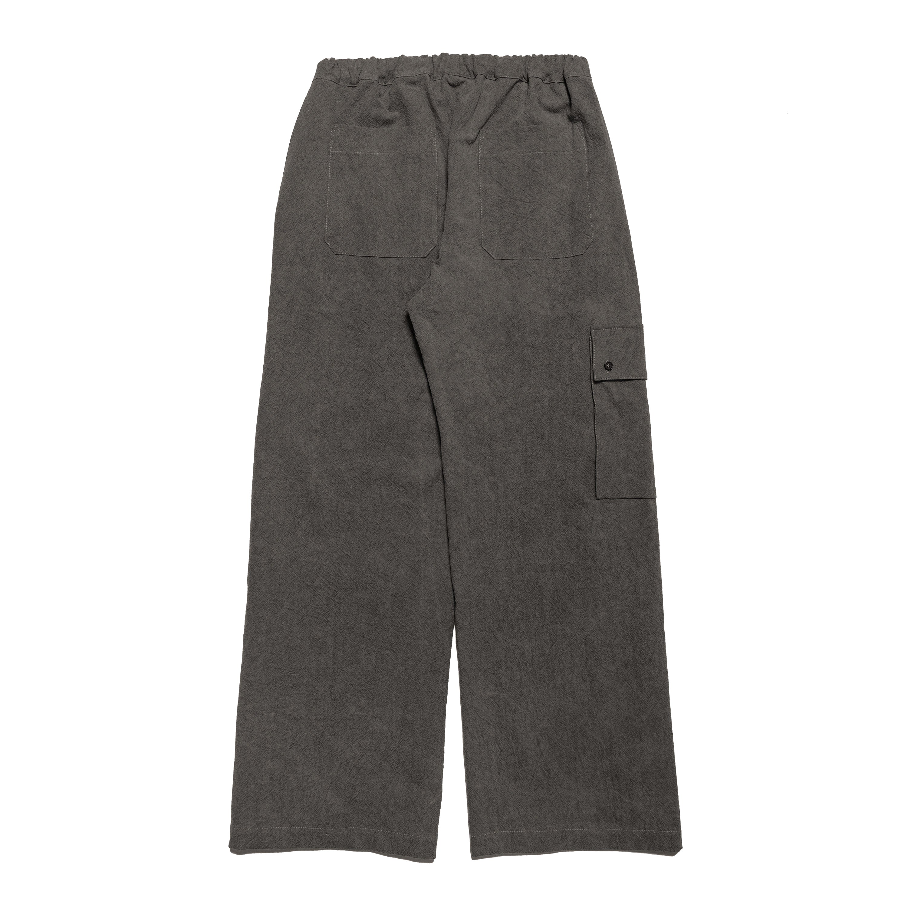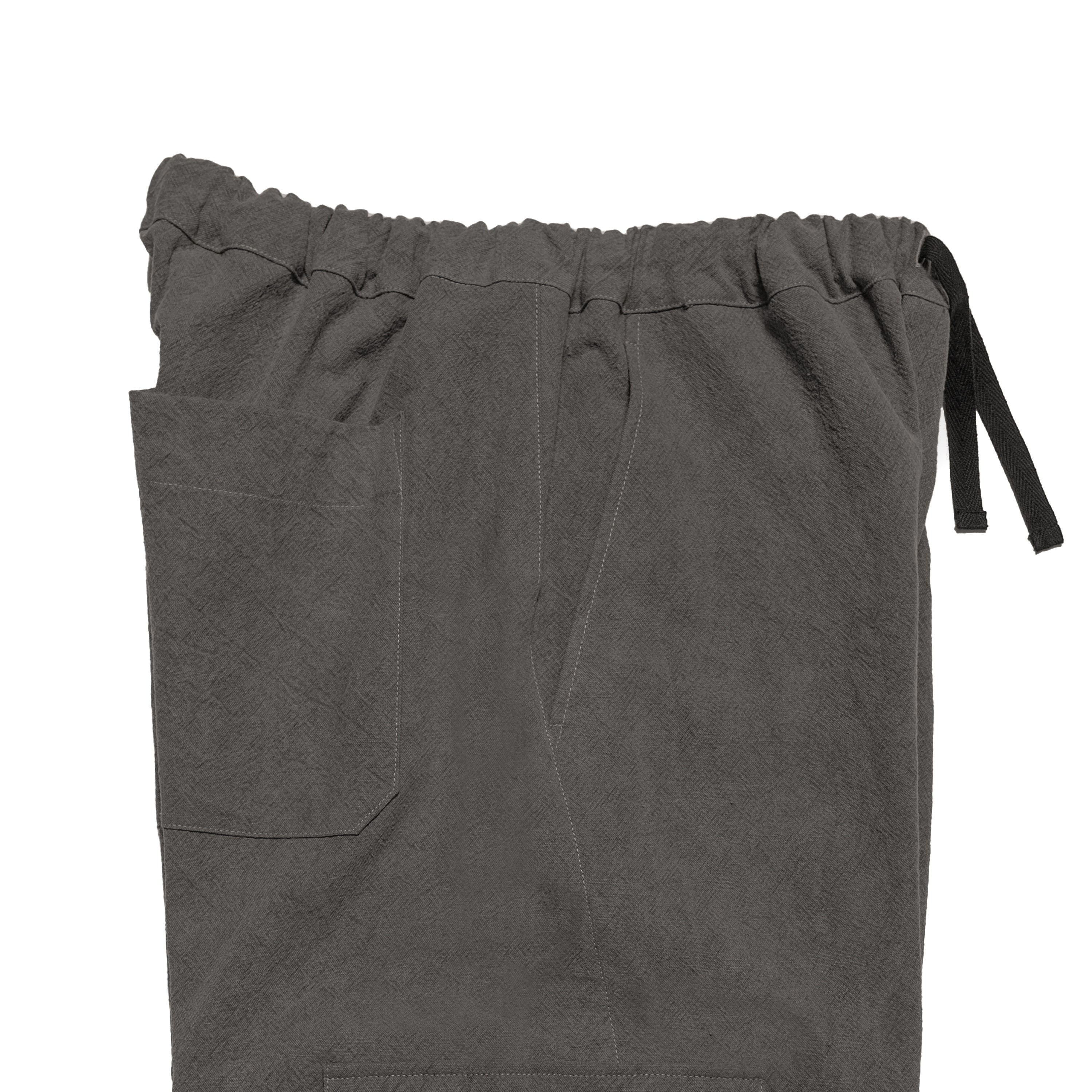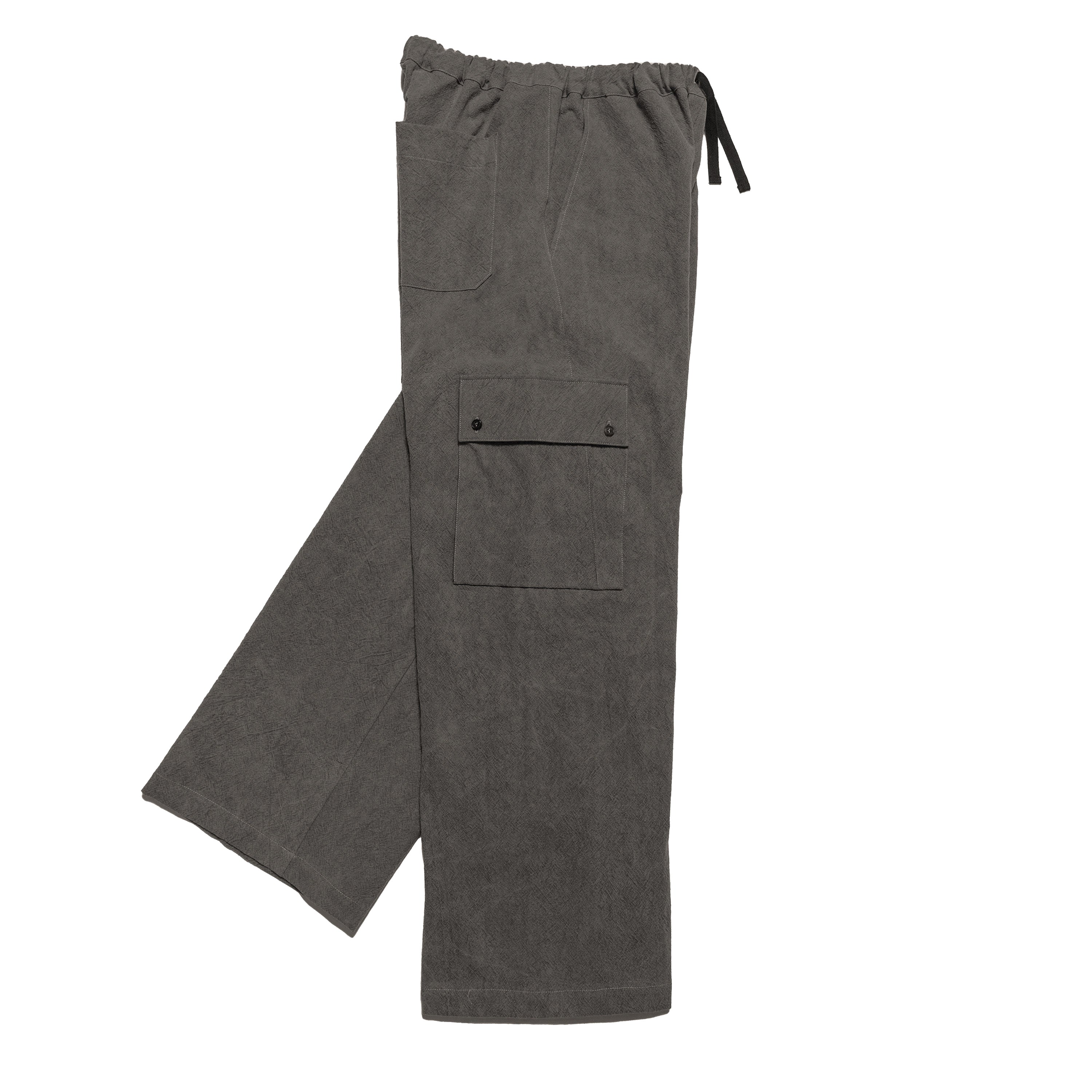 This unisex wide leg pant has a relaxed fit with a drawstring waist. Made entirely from one pattern piece with darting configuration blending into the side seam, it offers side pockets, back patch pockets and a darted cargo pocket on one leg.