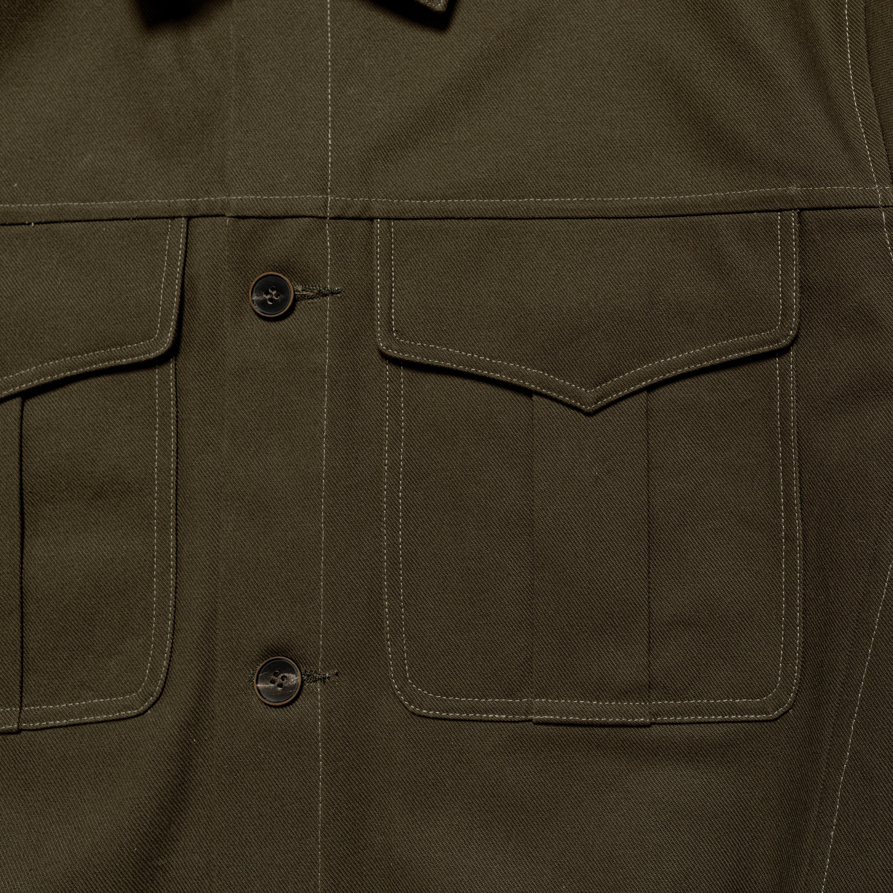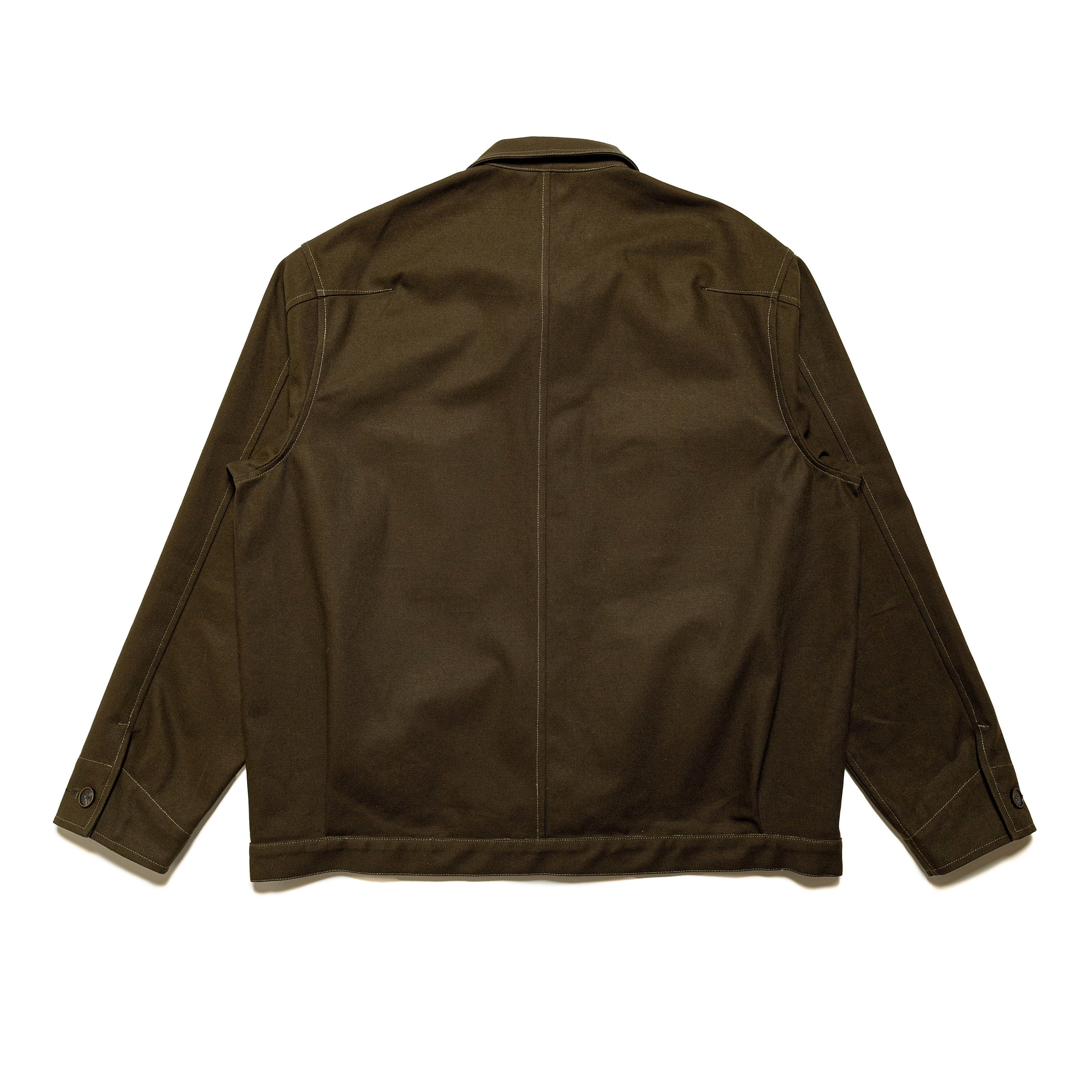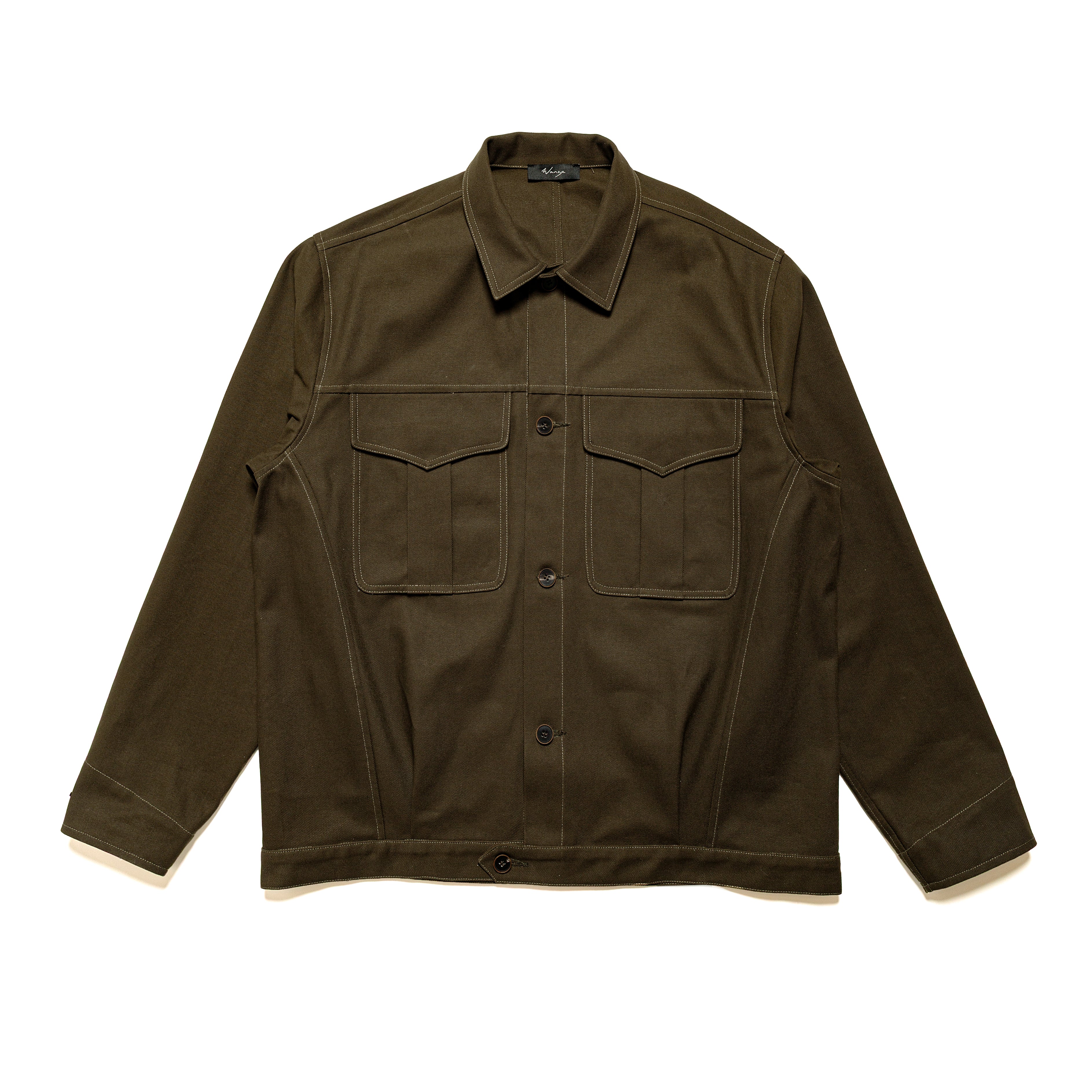 Made in a Japanese cotton twill, this heavyweight fabric is durable and holds structure for everyday wear. The lighter contrast stitching adds a subtle workwear element to the piece.