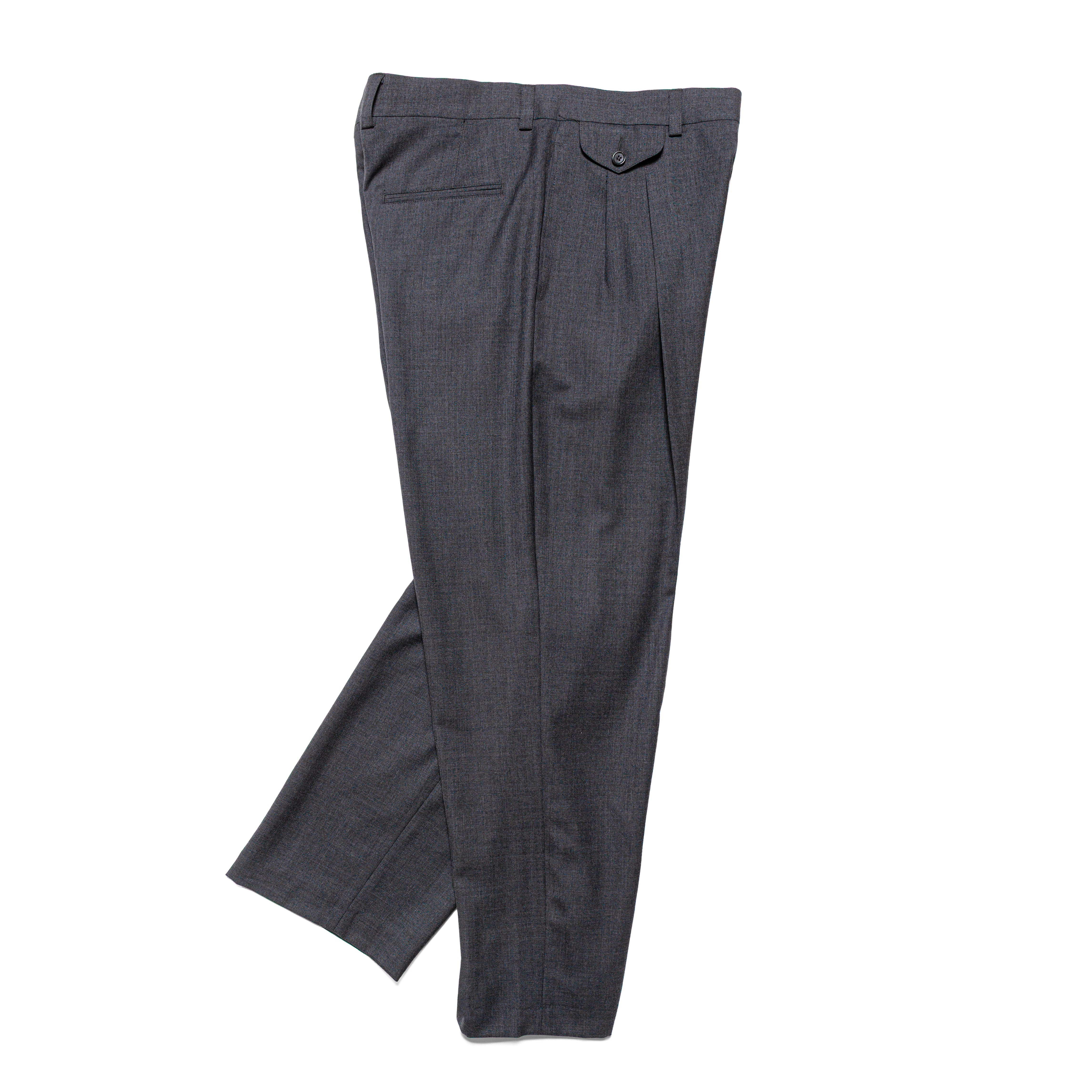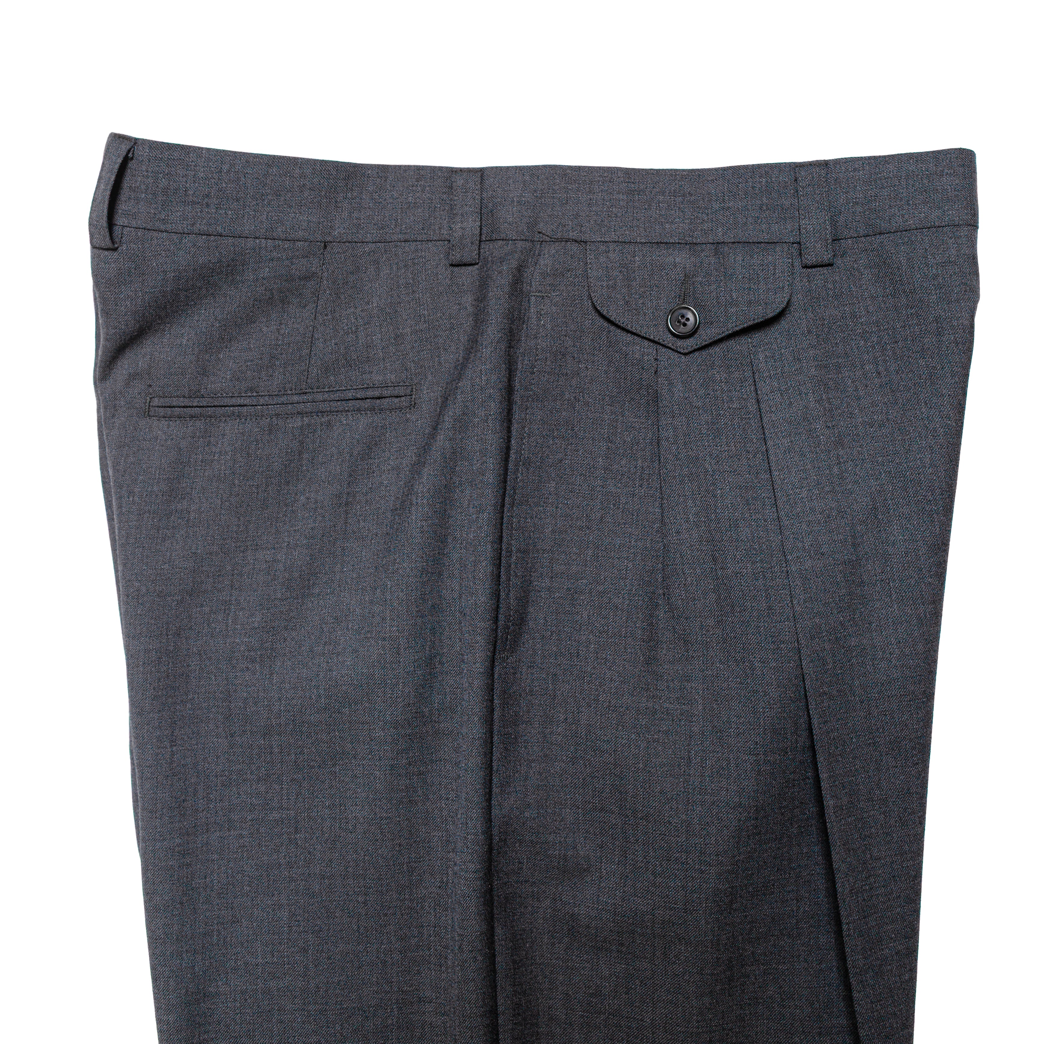 These trousers offer a relaxed, straight leg fit. Two pleats at the front create a crisp look, with a buttoned coin pocket on the right waist. Inseam pockets at the side seam along with double welt pockets at the back provide functionality for this classic style.