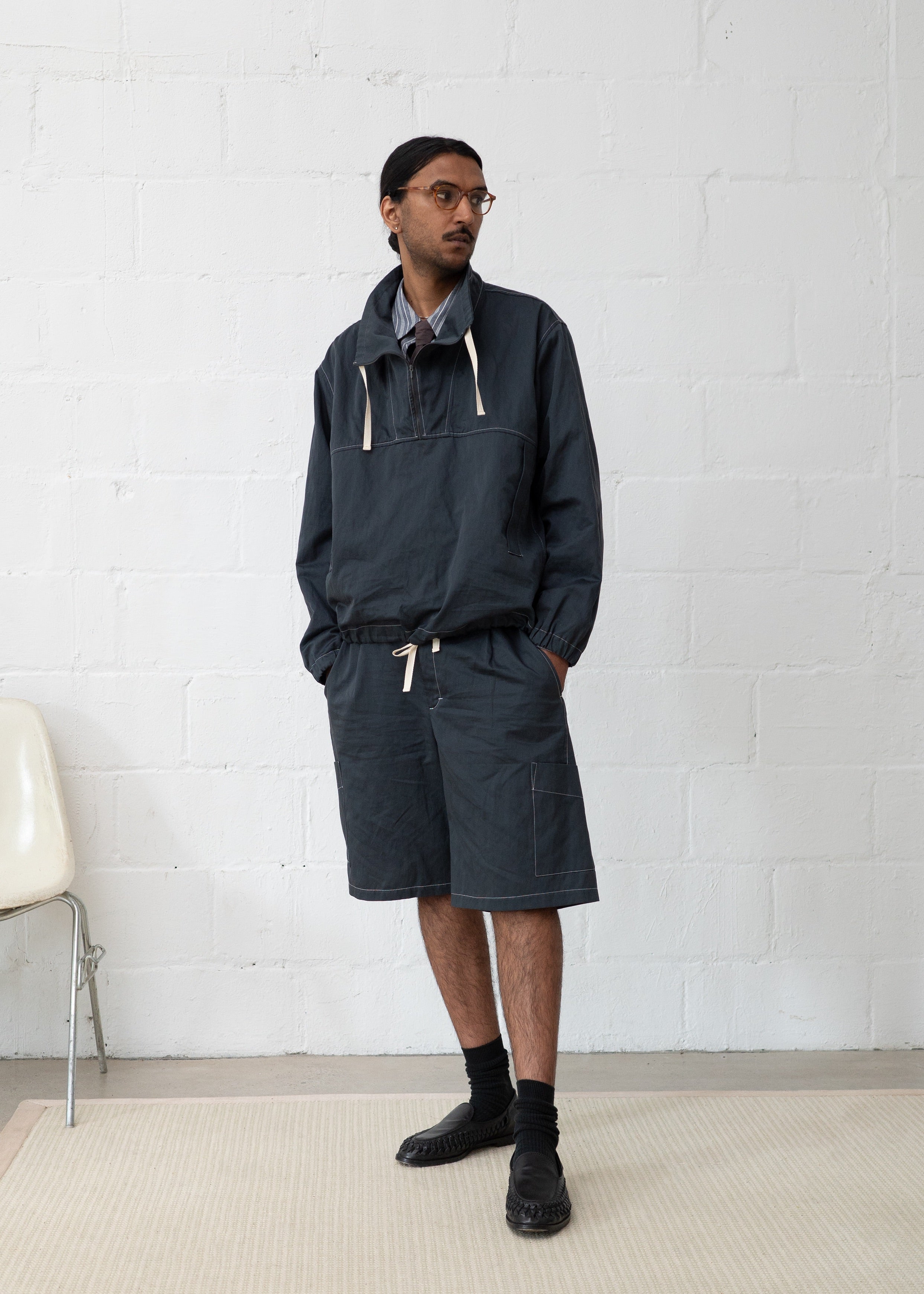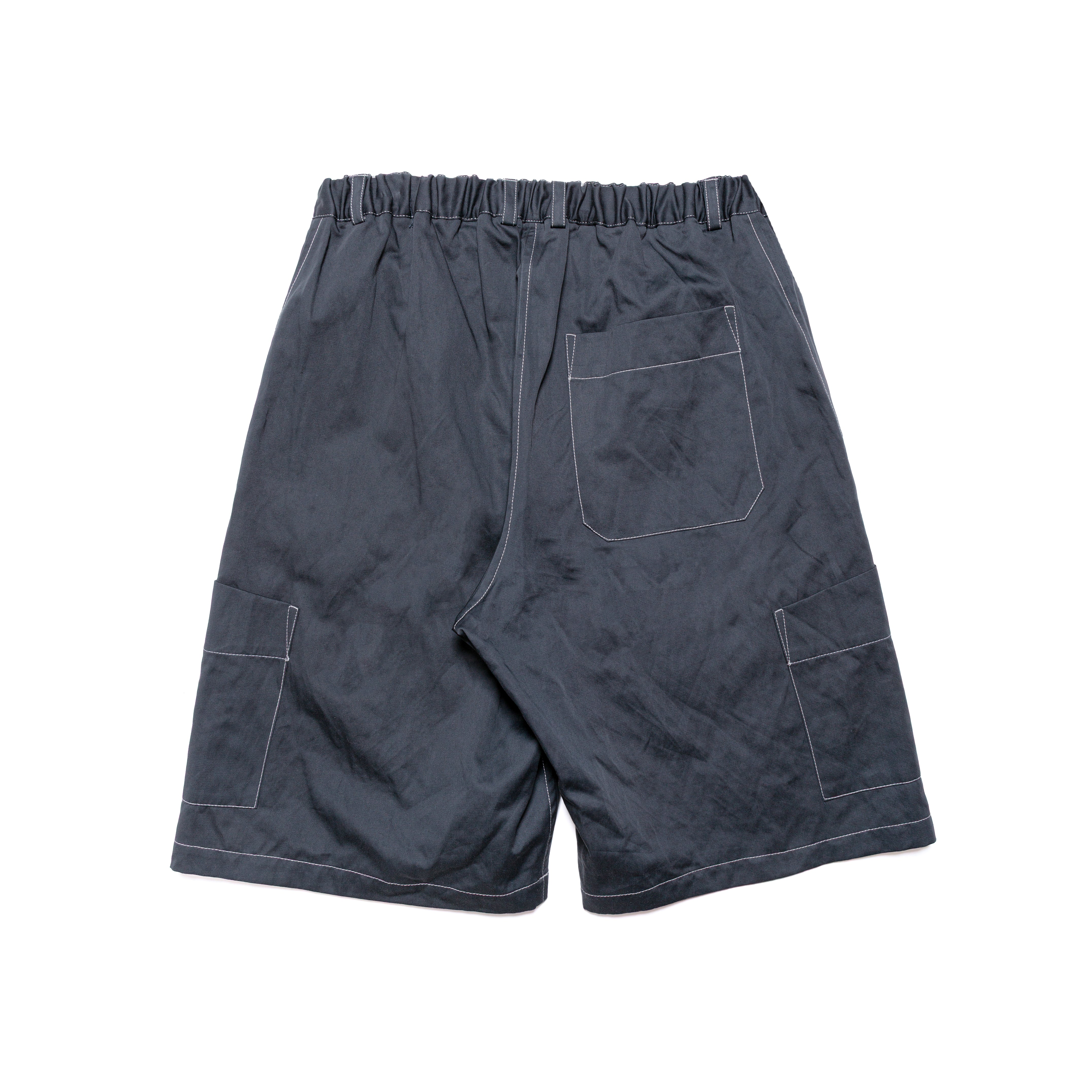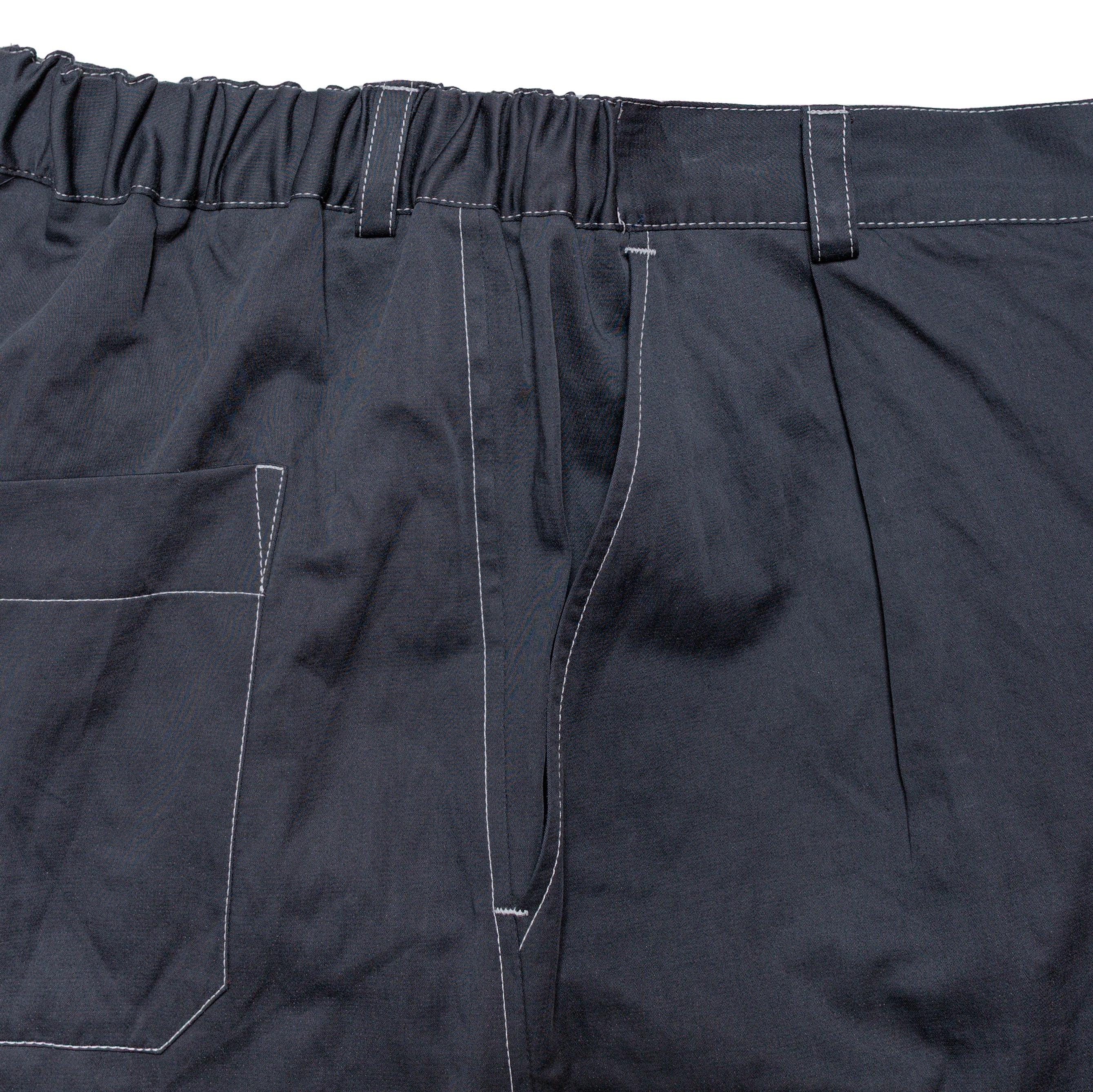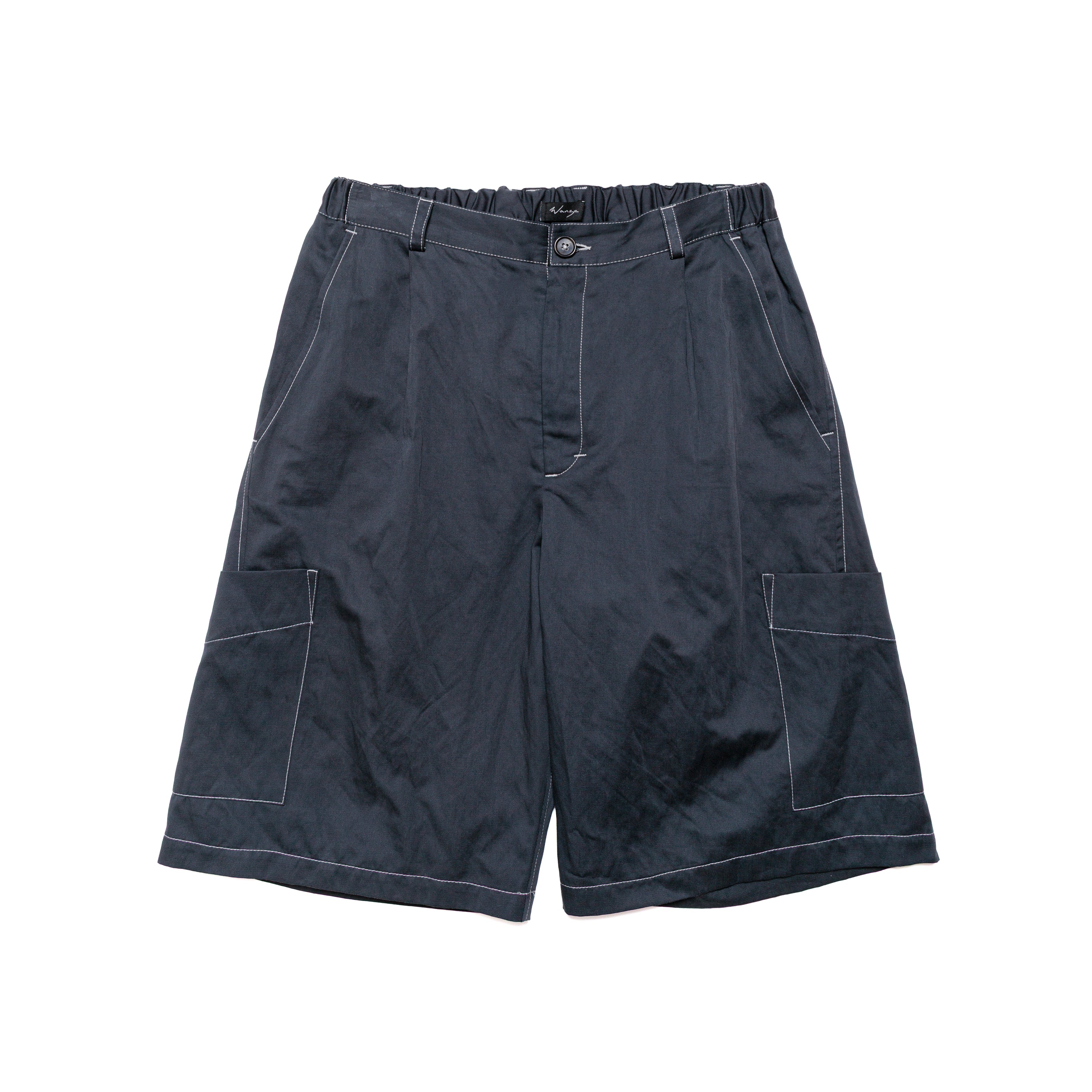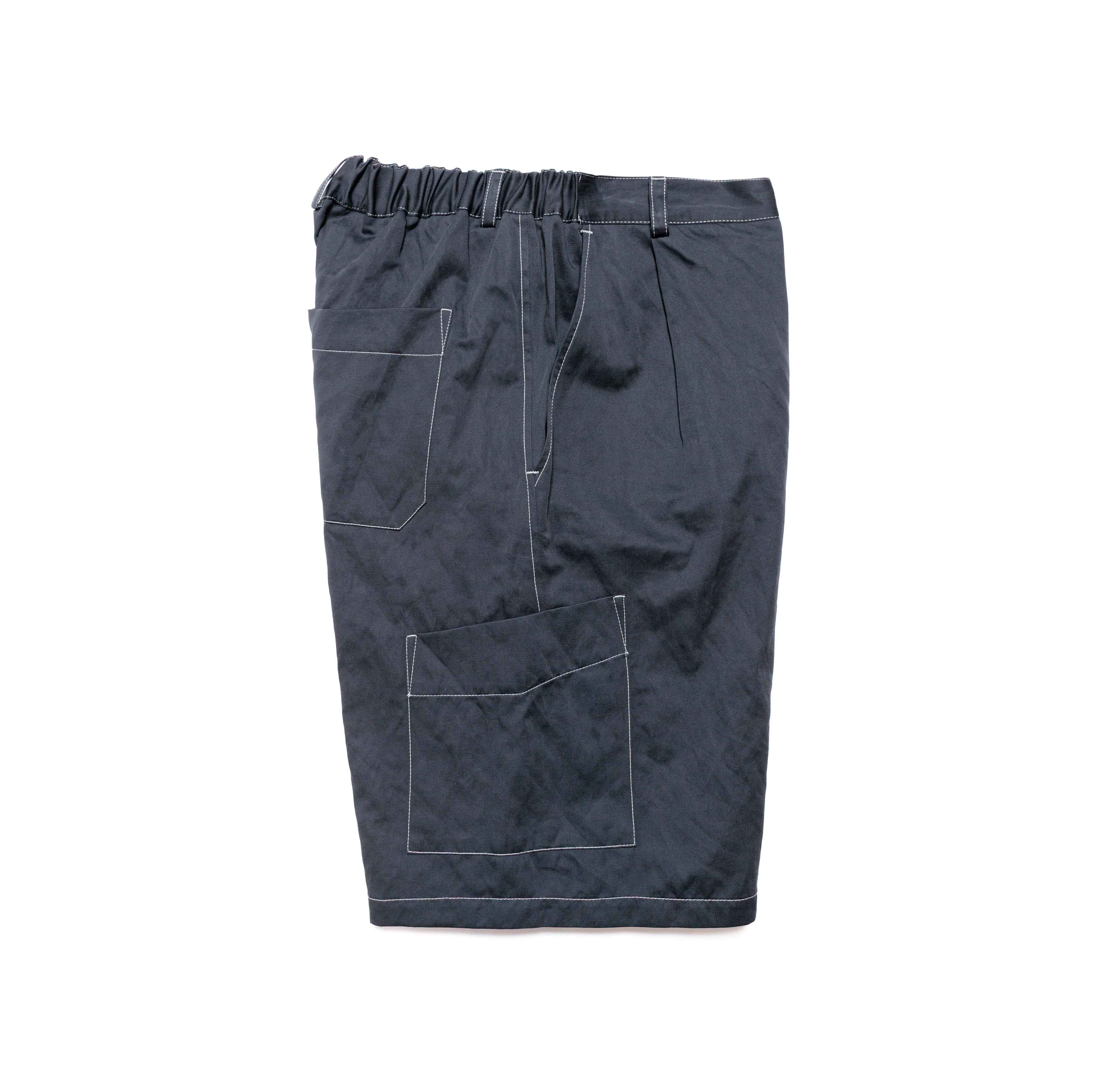 Developed from the easy short, these shorts offers a relaxed fit with formal details. The front features classic pleats and slash pockets at the waist, with a zipper fly closure. A patch pocket sits on the back of the pants, while additional patch pockets on the side of the leg add a cargo look. Elastic is inserted at the back waistband for added comfort.