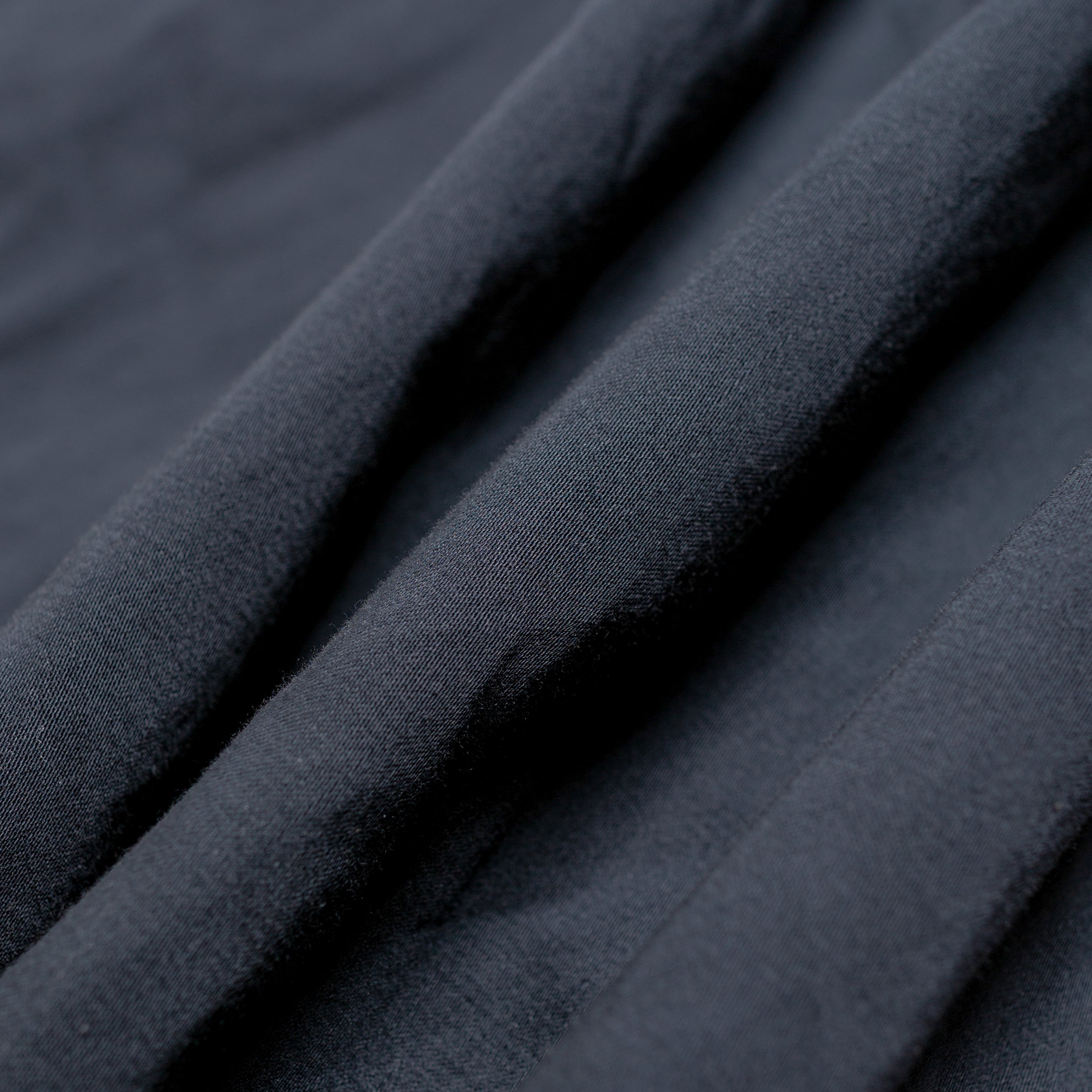 Made in an Italian cotton metal, this fabric has a soft drape with a slight sheen. The metal blend in the fabric develops a subtle texture that wears naturally. Contrast stitching throughout.
