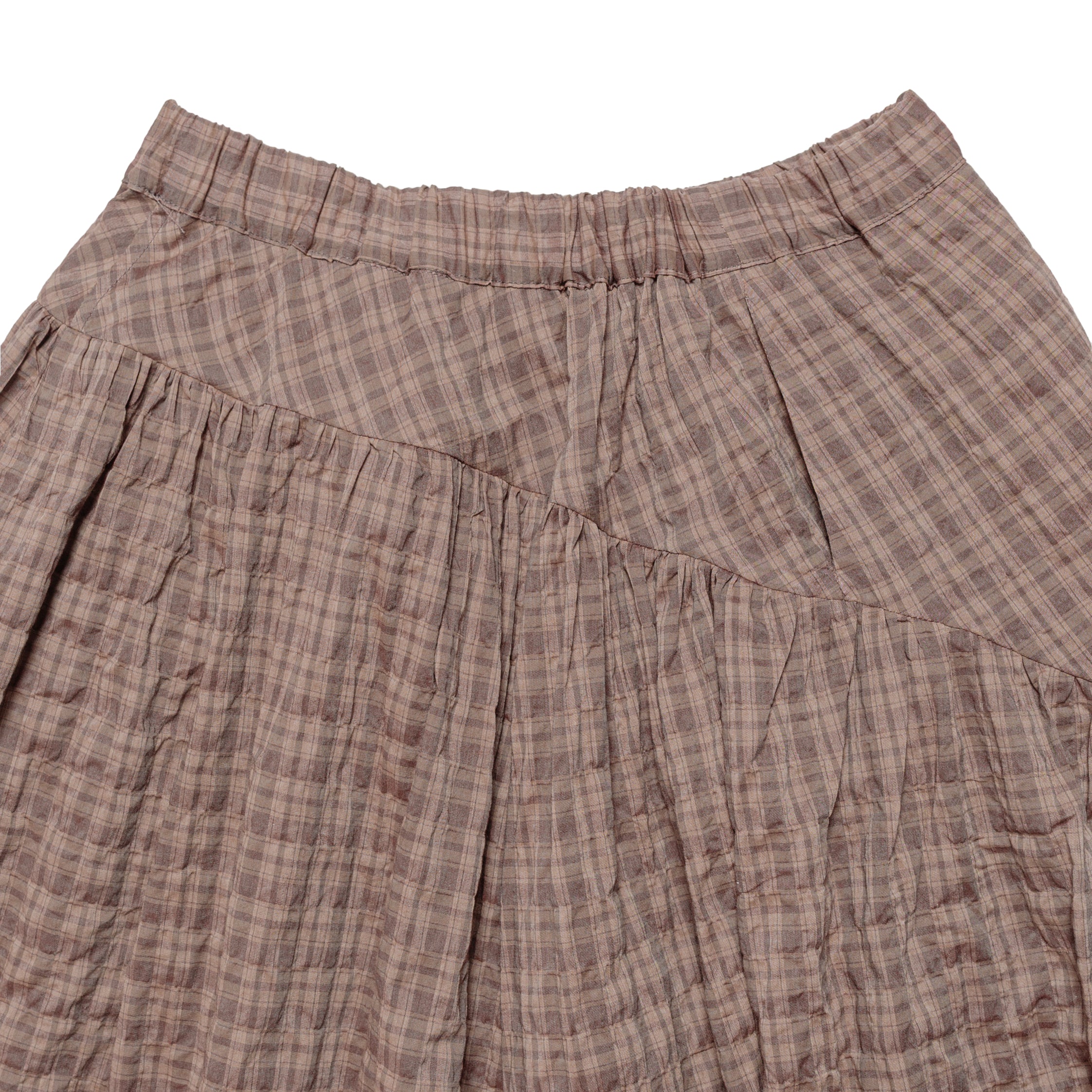 Made in a Japanese organic cotton, the fabric has a seersucker texture that complements the plaid pattern. Lightweight and breathable, the gathers have a soft drape that moves with the wearer.