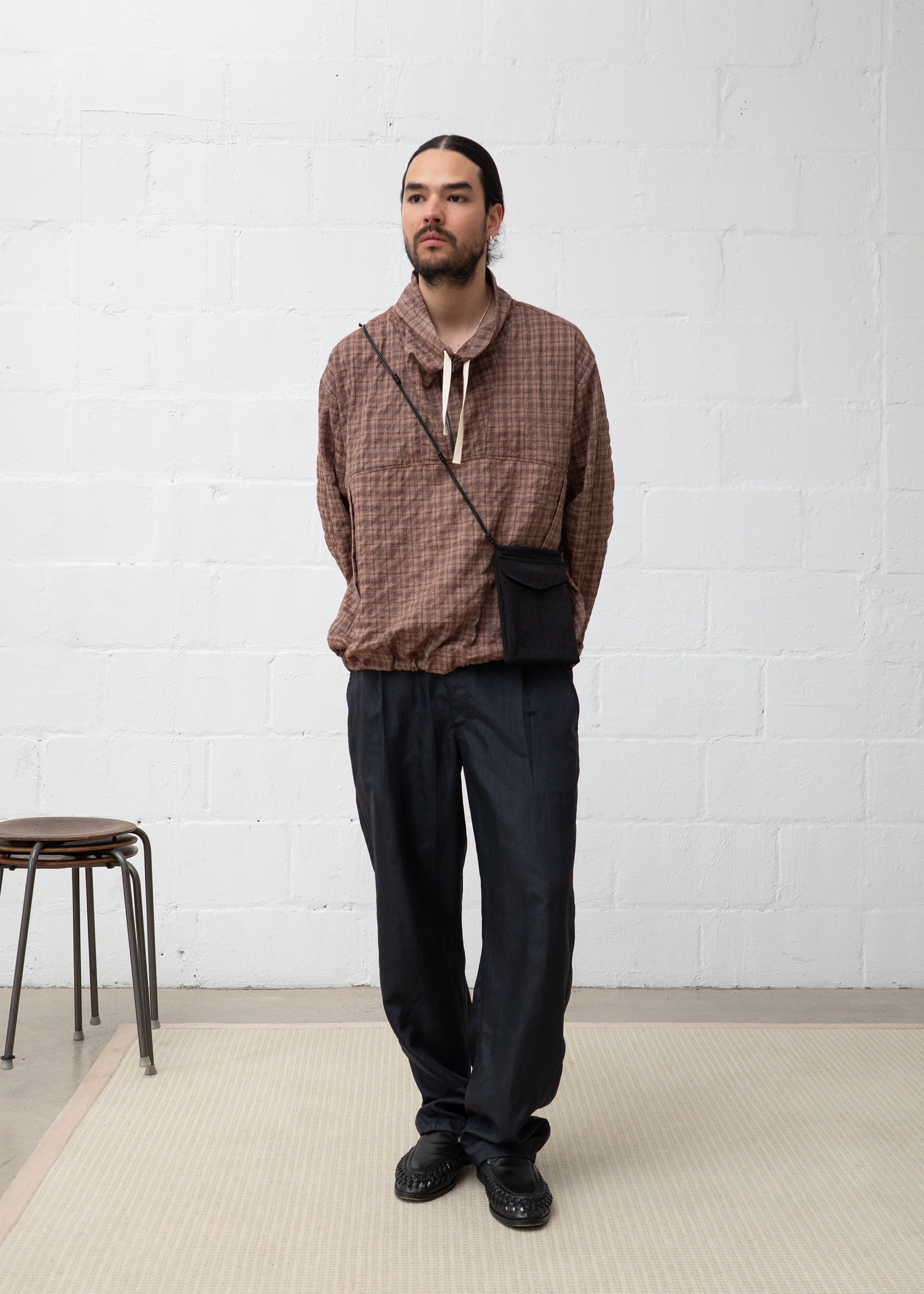 Made in a Japanese washed shiny nylon, this fabric is lightweight with a slight sheen. The washed texture of the fabric adds a lived-in look that will continue to develop with wear.