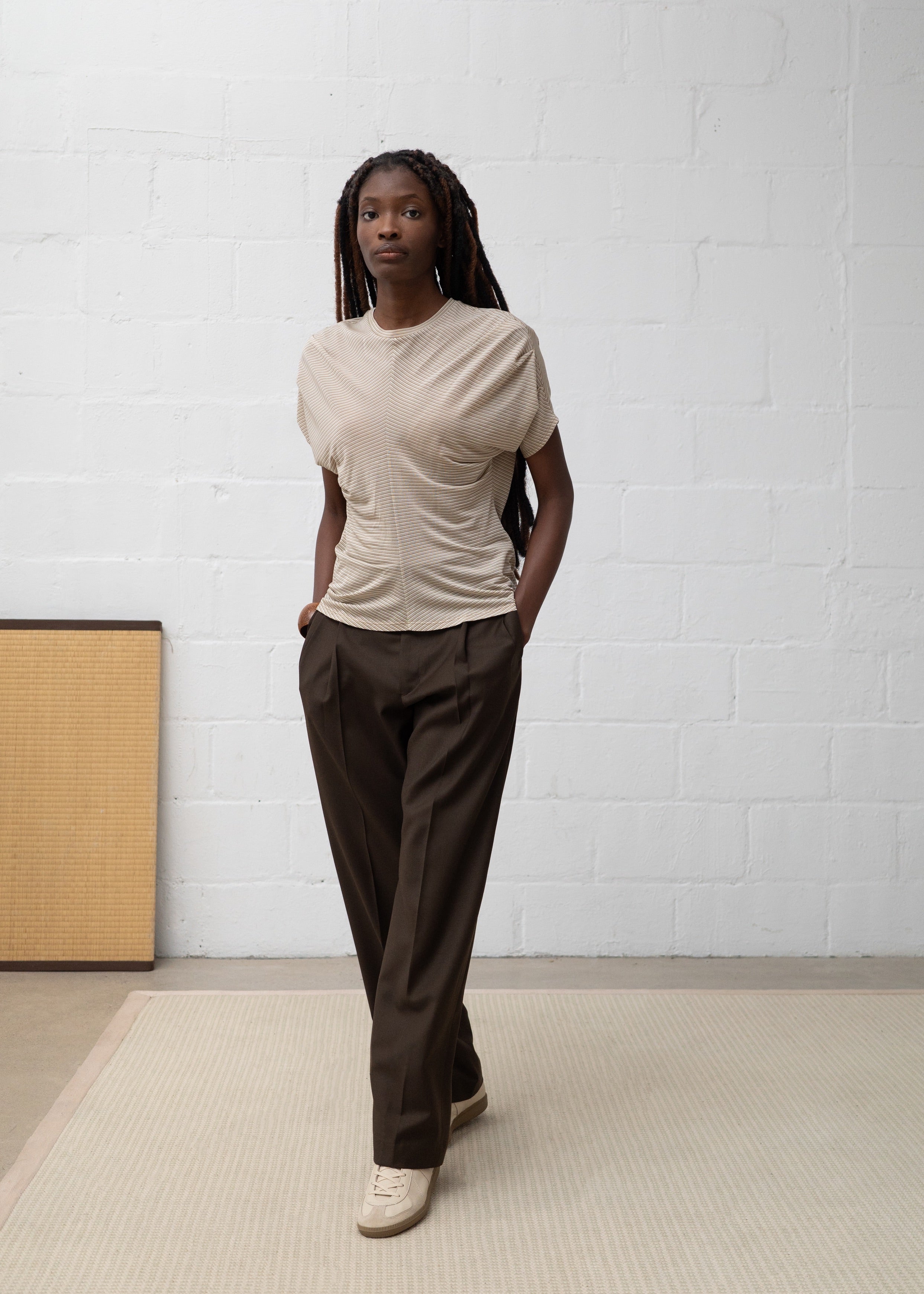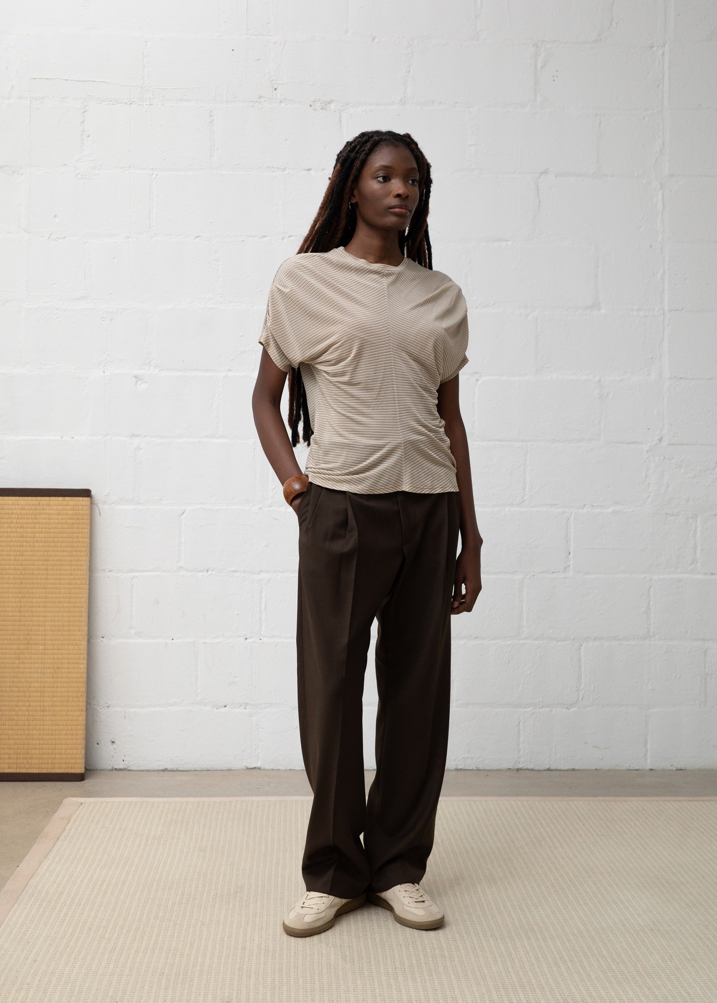 Pleated Shoulder Jersey Tee Viscose Cotton Sesame - PREORDER