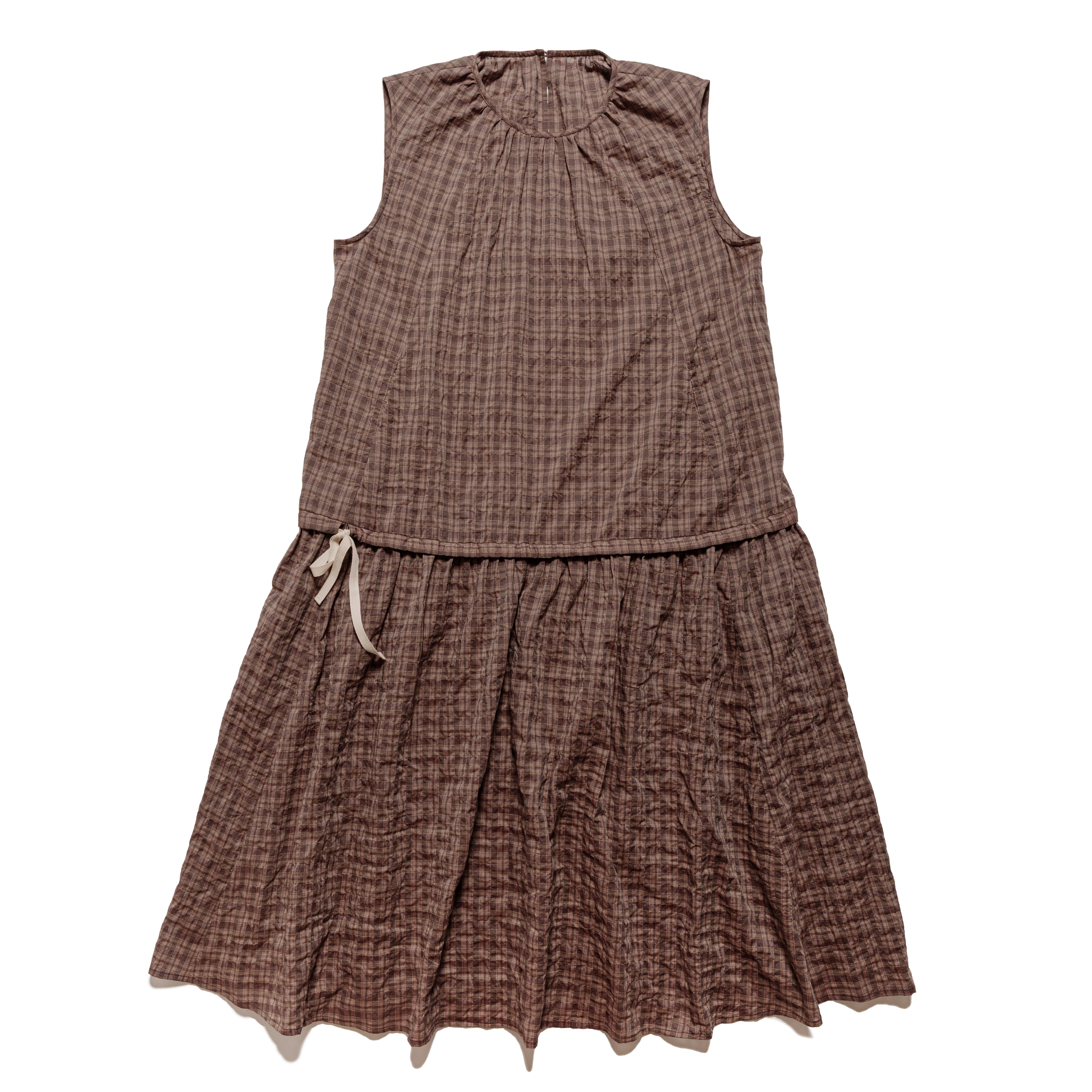 This full length dress has a relaxed, flared fit. Subtle gathers at the neckline and waist add volume to the dress, with a contrast drawstring at the low waist, allowing the wearer to cinch in the silhouette. Style lines flare down the dress with inseam pockets at the waist.