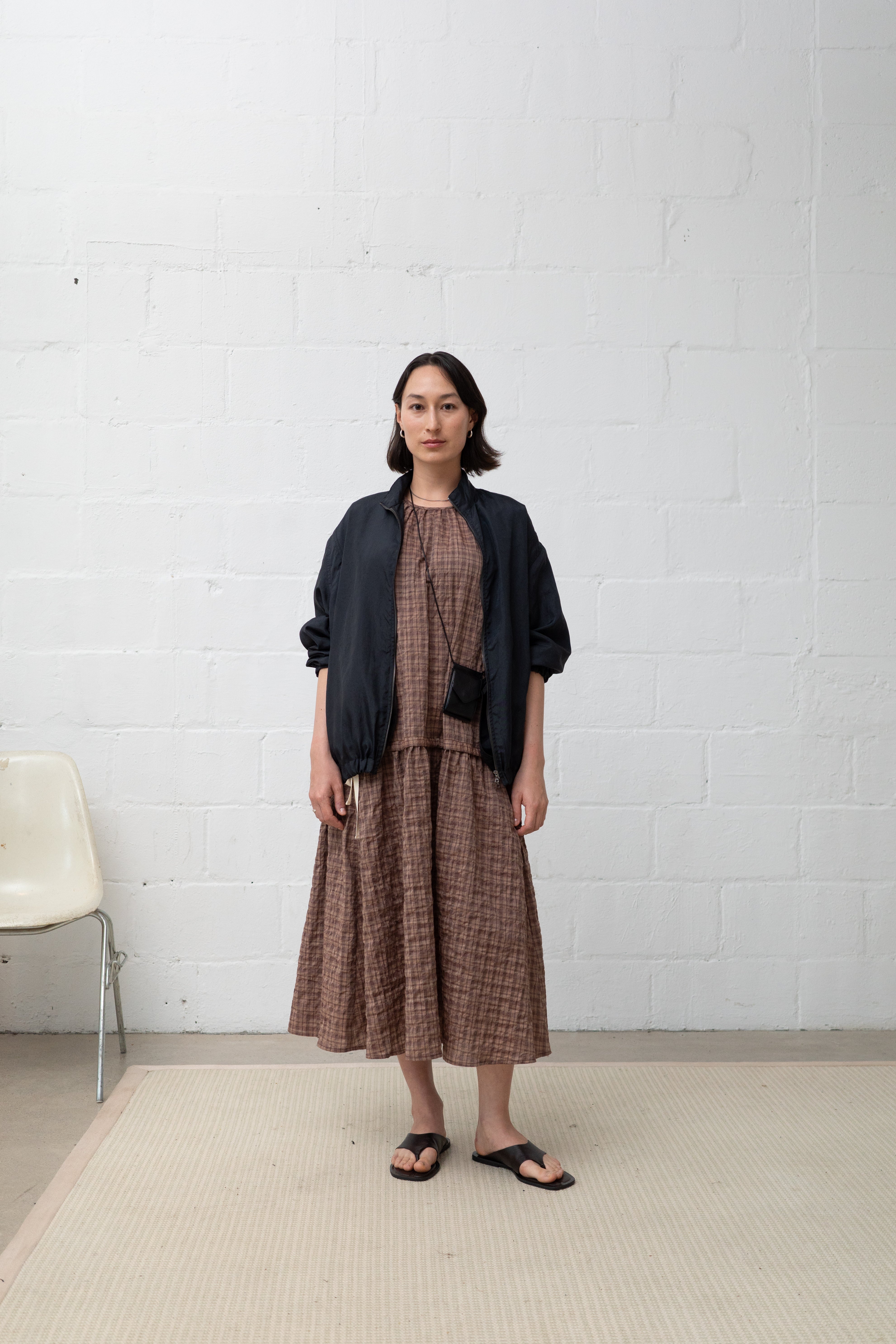 Made in a Japanese organic cotton, the fabric has a seersucker texture that complements the plaid.
