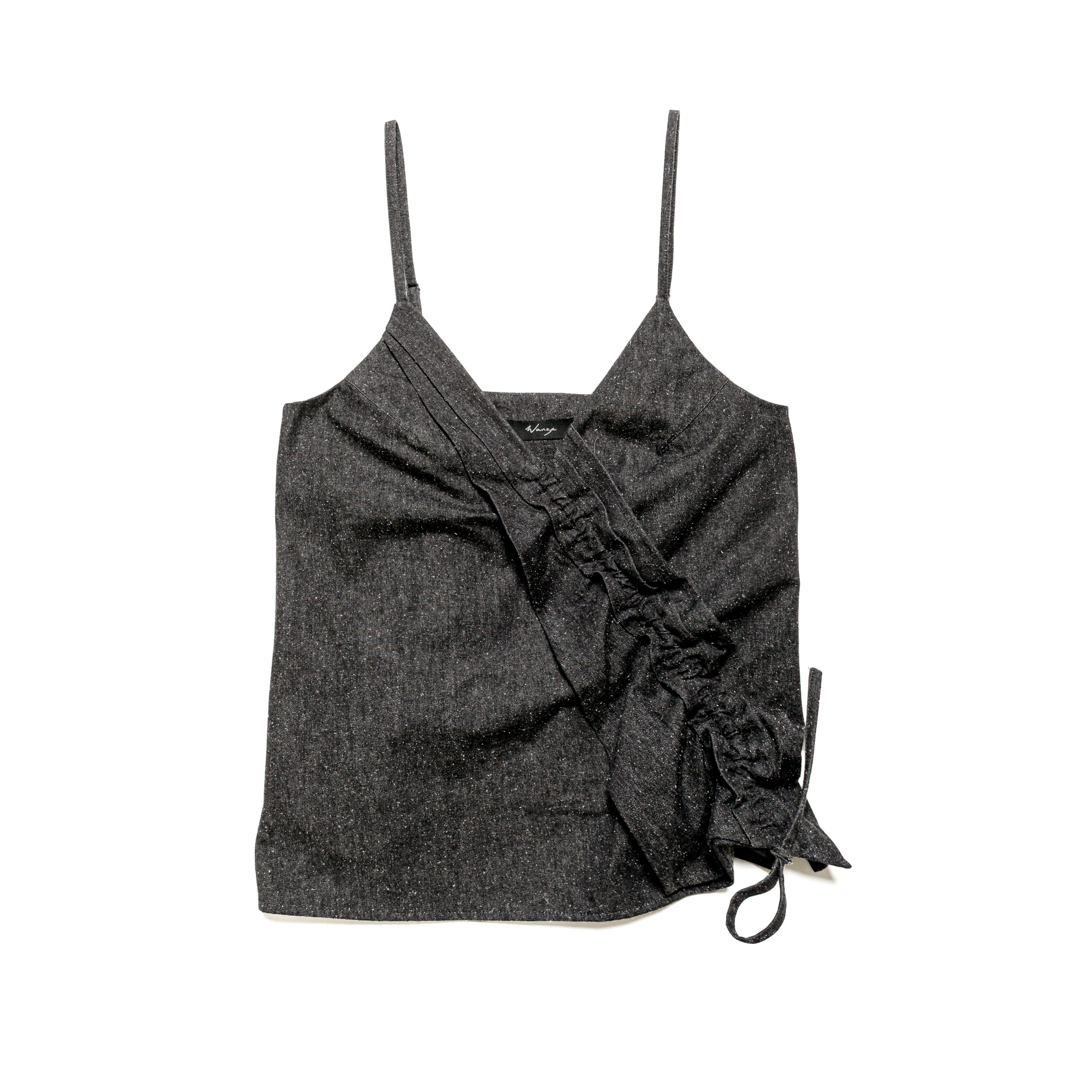 Ruffle Camisole Tank Cotton Silk Chambray Black - PREORDER