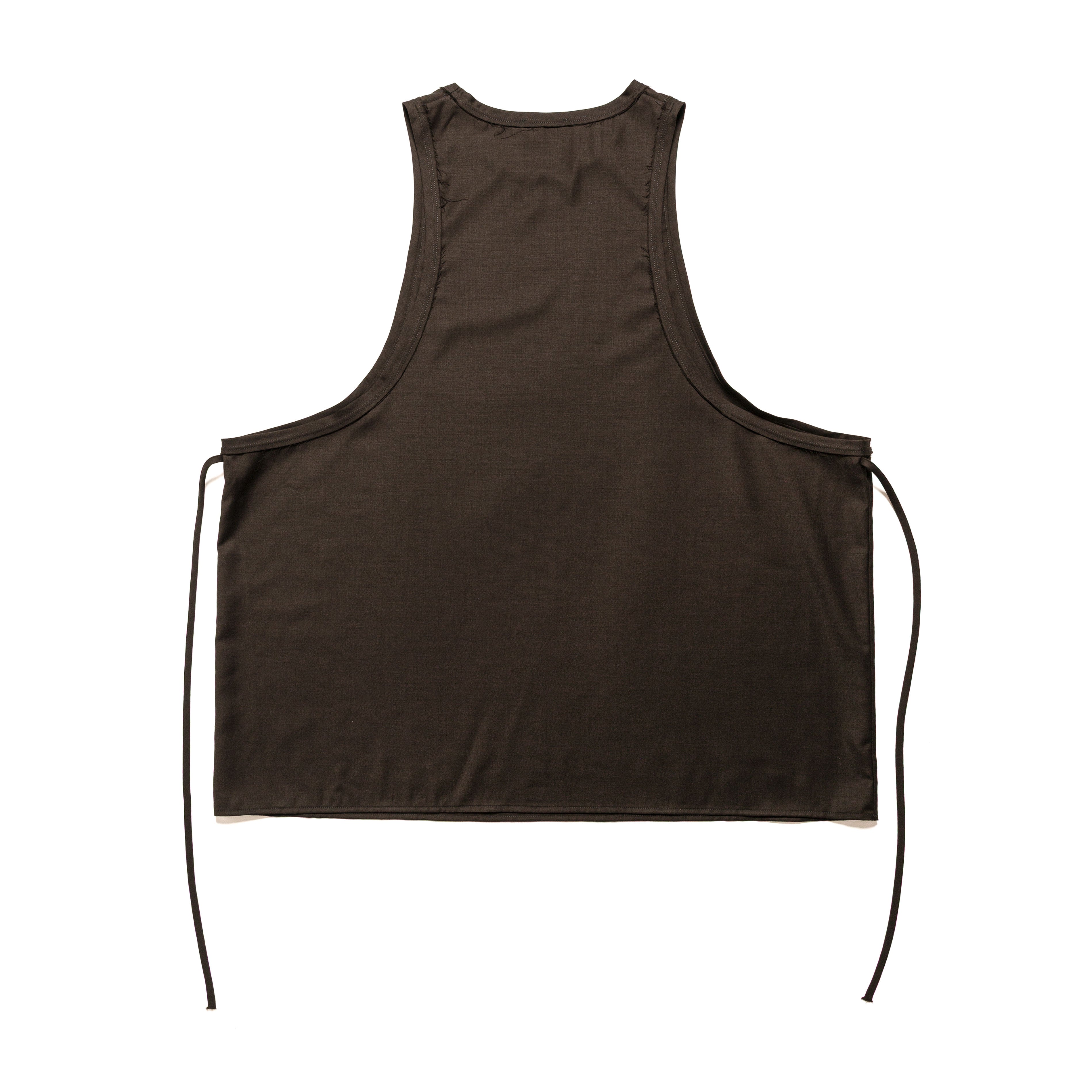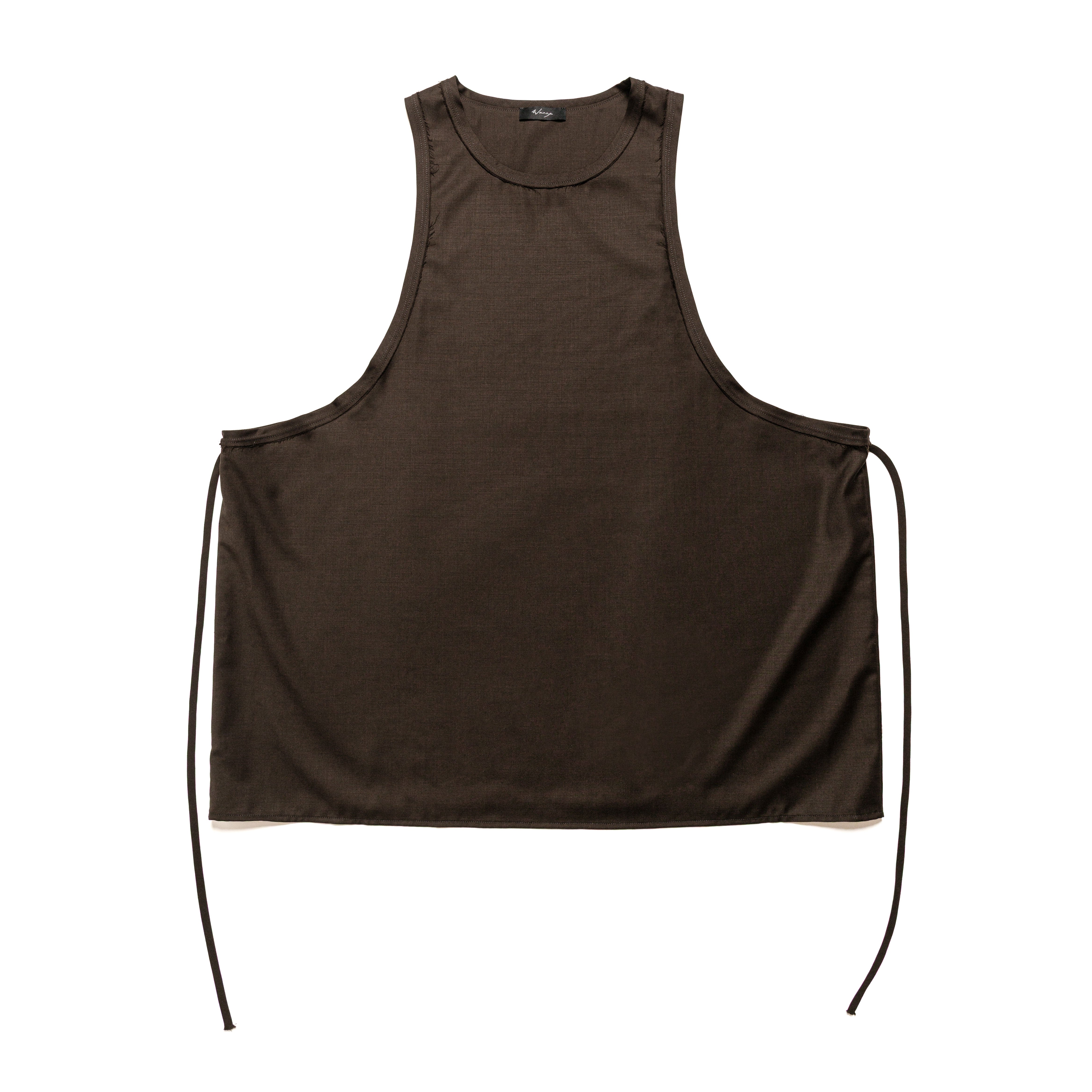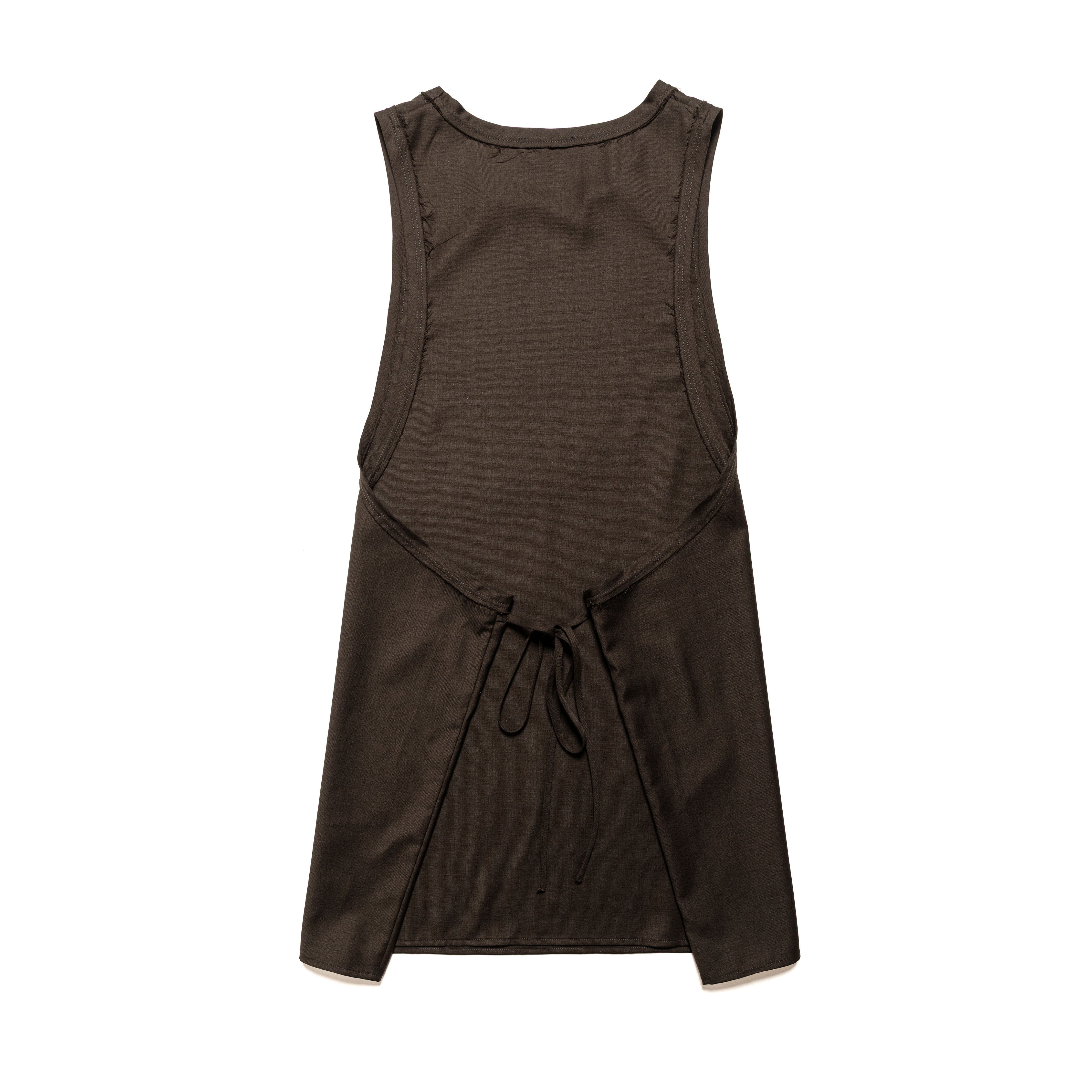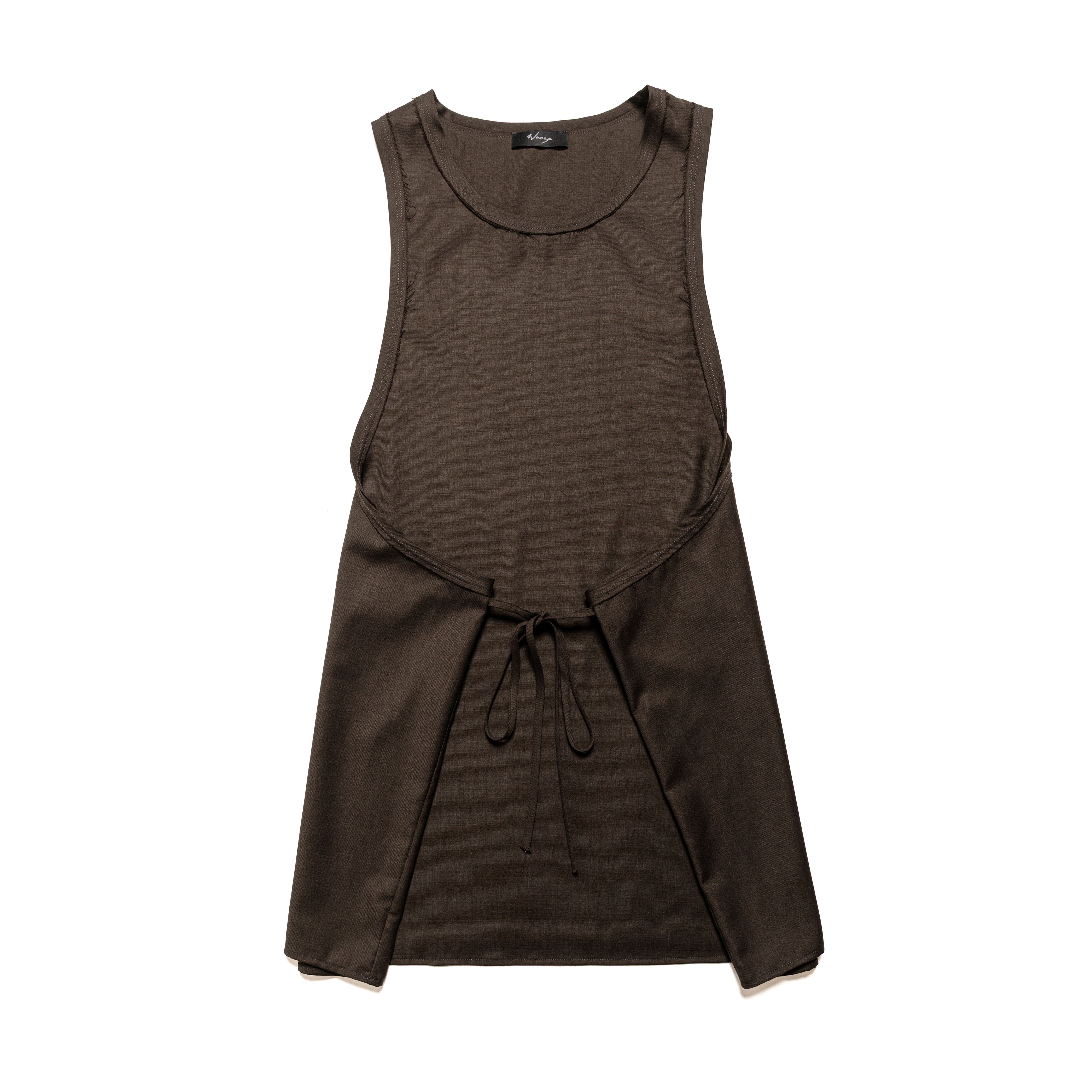 Simple and elegant, this tank dress has a relaxed and adjustable fit. Cut with a wide waist and exaggerated armholes, ties at the side wrap the dress around the body. Exposed bias strips finish the neck and armholes, left raw to age gradually with wear.